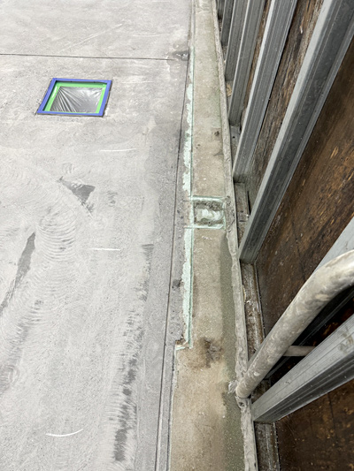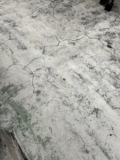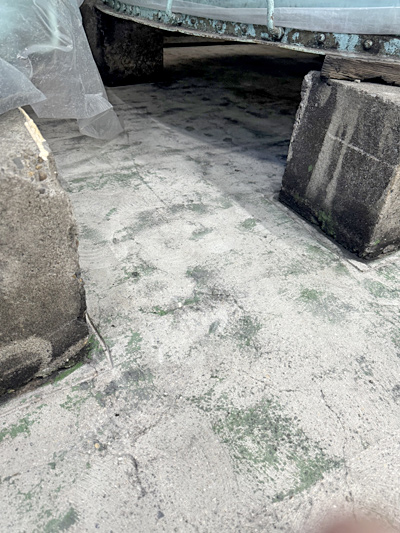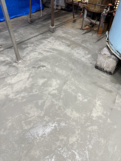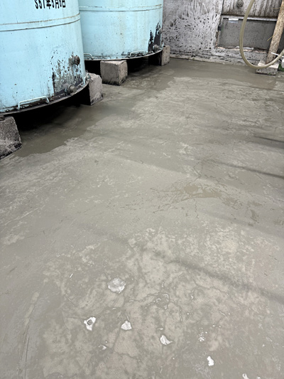 苛性ソーダにて酸性化したコンクリートを中和洗浄。その後、乾式下地処理を施しました。