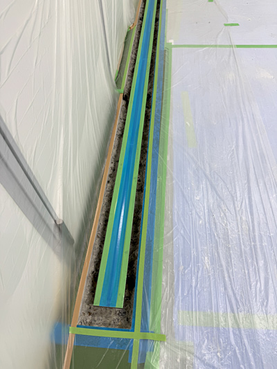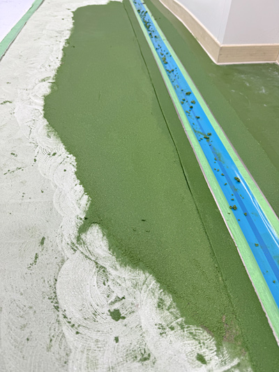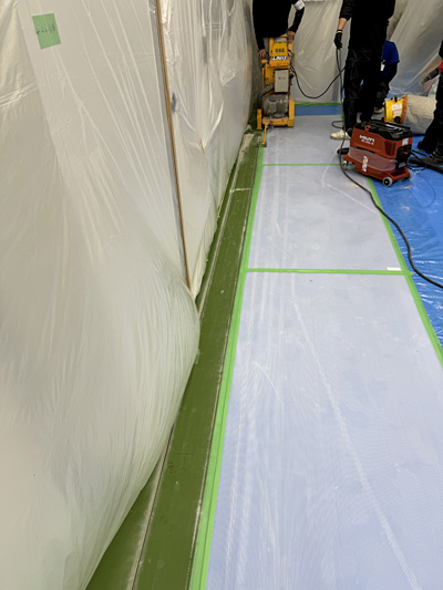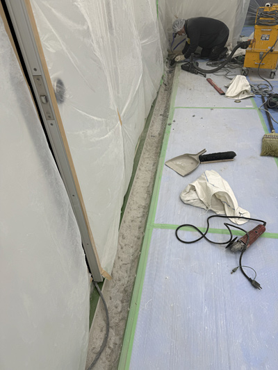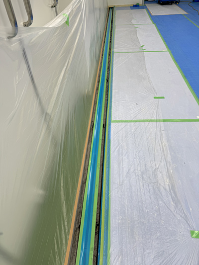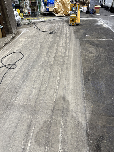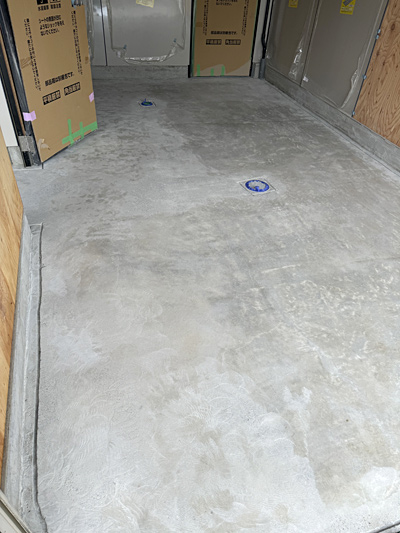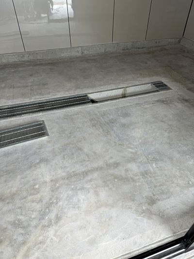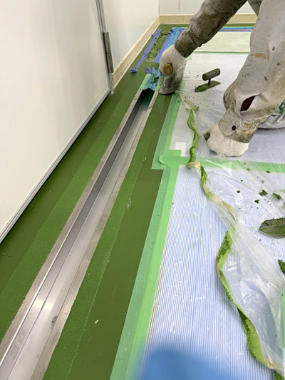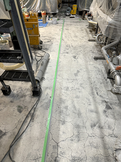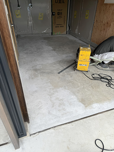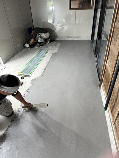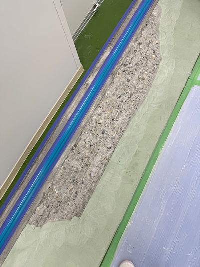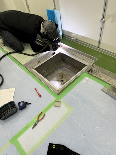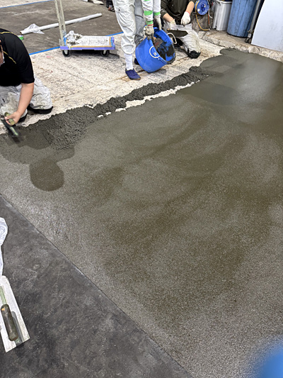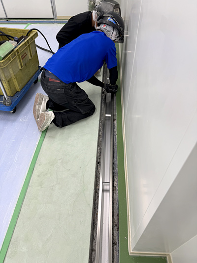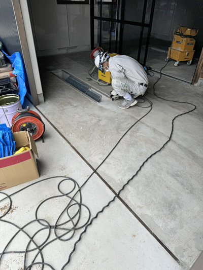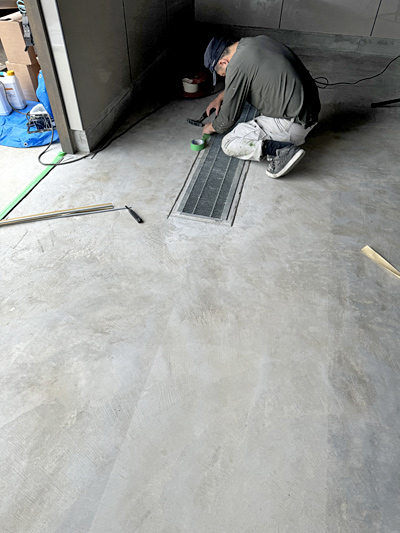 床面のコンクリートを削り、周りと段差がないように注意深く施工しております。