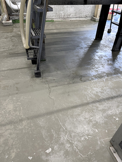 今回の工事では、ユークリートUD200SRを使用し、部分的に破損していた床を対象に作業を実施。