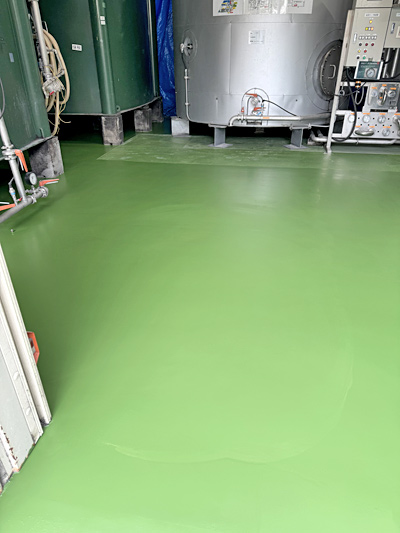 工事ではまず下地処理を丁寧に行い、床面の凹凸や劣化部分を整えたうえで仕上塗りを実施しました。