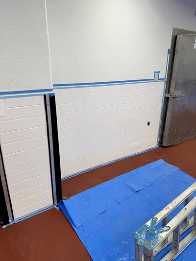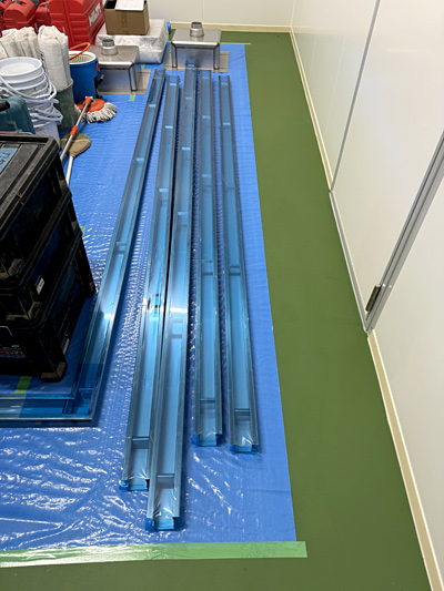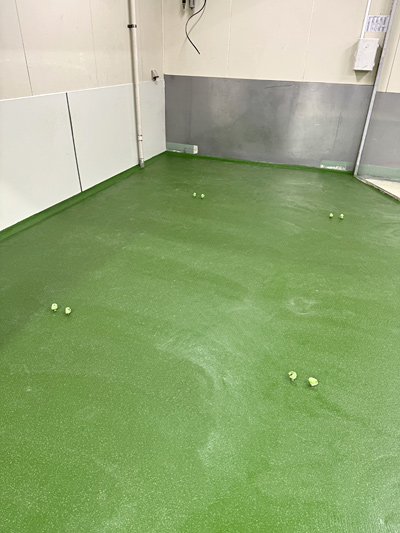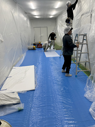 こちらは大型の冷凍庫で、−25℃の冷凍庫の中でも硬化する特殊な材料を使用し、冷凍庫の温度を常温に変更せず−25℃のまま施工しました。