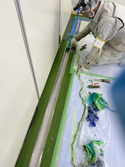 施工前にはしっかりと養生を行い、下地処理を丁寧に実施。