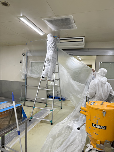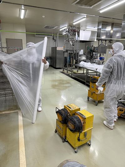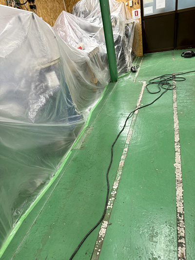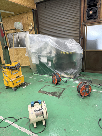 まず周囲設備への影響を防ぐため、十分な養生を行ったうえで作業を開始。