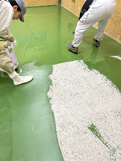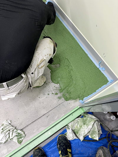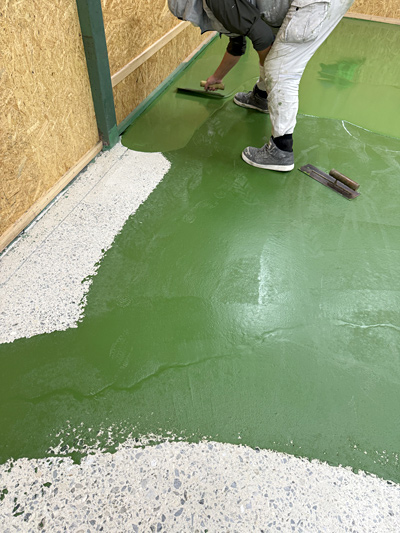 下地を整えた後、ユークリートMTを施工し、さらにユークリートRGで仕上げを行うことで、