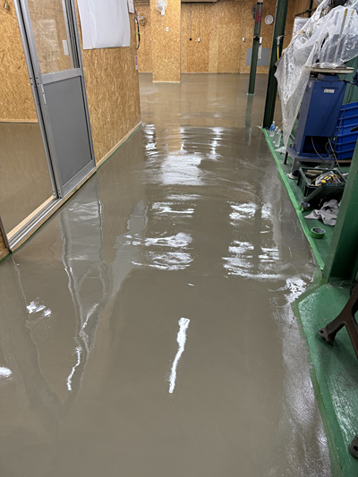 工場の床面をコーティングしました。こちらはBASFジャパン社製 ユークリート工法にて施工を行いました。
