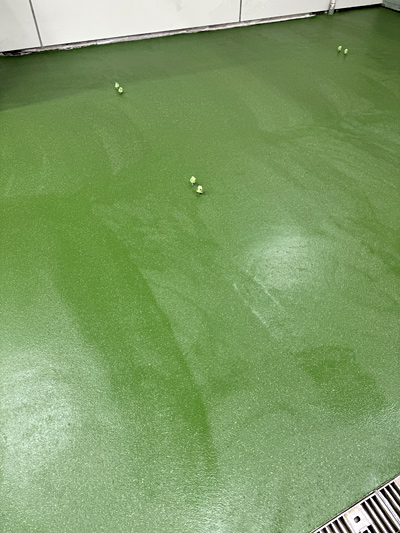 衛生管理が求められる食品工場の床にふさわしい、高耐久かつ美観性の高い仕上がりを実現しています。