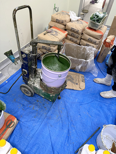 塗床材の密着性と耐久性を確保するため、床面を最適な状態まで整えました。