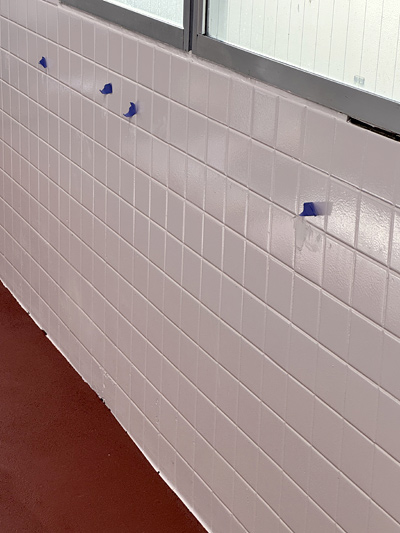 下地を研磨し、クラック処理をした後にエポキシ厚塗り工法にて仕上げを行っております。