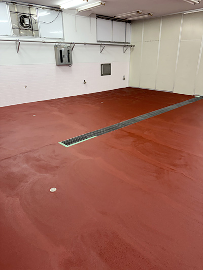 急速冷凍庫特有の過酷な使用条件に対応した、耐久性・安全性に優れた床仕上げとなっています。
